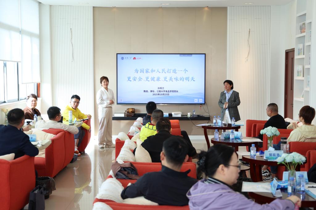 科研积累与产业融合。孙秀兰立足行业发展全局,系统阐述企业责任与未来发展方向,并与学员就学习需求进行了深入交流;朱科学结合学校在面制食品领域的深厚研究,解析科技驱动产业升级的路径;赵伟围绕低GI(血糖生成指数)的形成机制及功能组分展开专业剖析;陈洁就植物基蛋白结构重组技术进行系统讲解;翟齐啸深入探讨了益生菌与肠道菌群的挖掘应用,指出前沿技术对功能开发的推动作用;陈志远参与的食药同源专题研讨,进一步推动了科研资源与企业产品开发的有效对接。