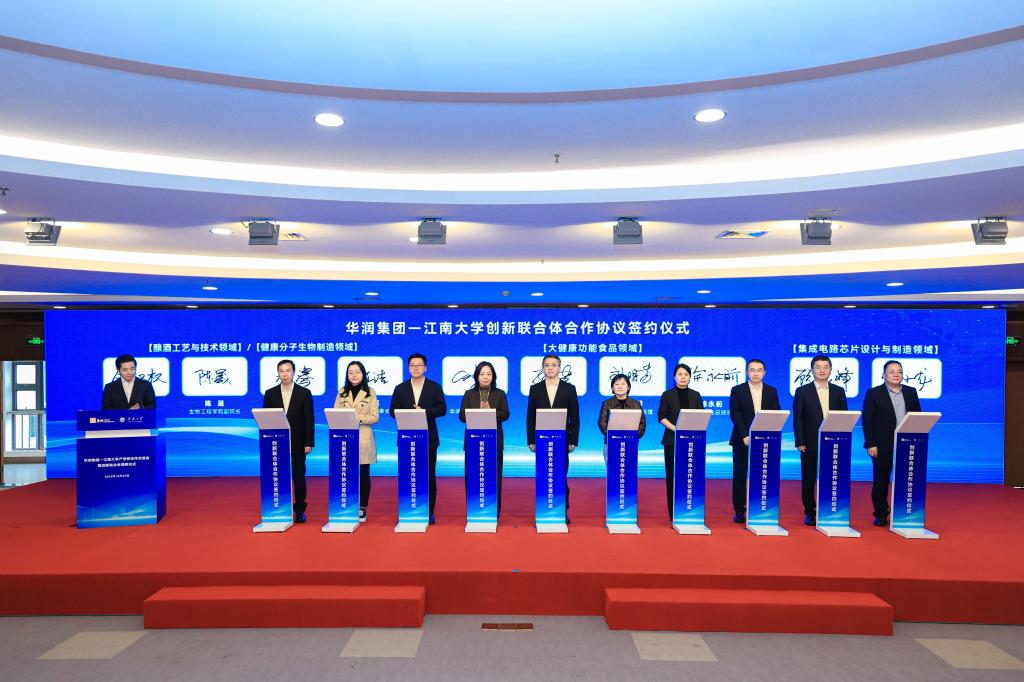 创新联合体”在太湖之滨正式揭牌。华润集团总经理王崔军、人力资源部总经理杨坤、科技创新部总经理陈雷,华润医药董事会主席白晓松、华润创业董事长程洁、华润微电子董事长何小龙、华润啤酒总裁金汉权、华润五丰总经理刘明芳、华润双鹤总裁赵骞、江中药业总经理徐永前等共同出席活动。此次揭牌标志着校企双方历时近一年的战略对接迈入“实体化、平台化、一体化”新阶段,既是此前双方战略合作框架协议的快速落地,也是央企与“双一流”高校携手培育新质生产力的有力探索。