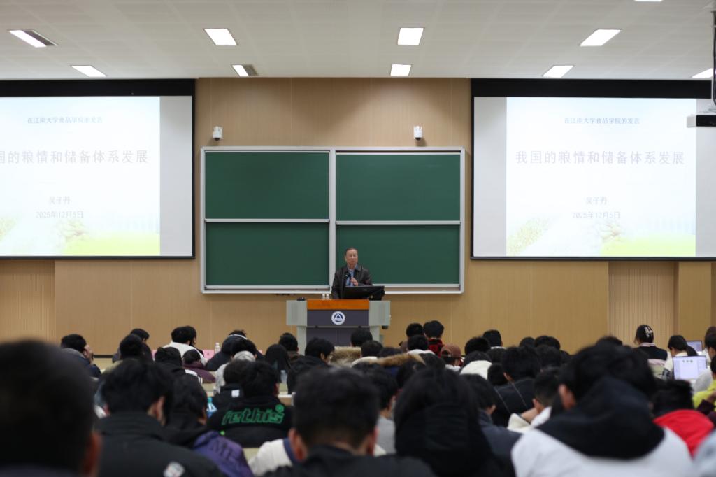 《食品产业导论》课程迎来一场聚焦国家粮食安全的高层次讲座。本次课程特邀国家粮食局原副局长、国务院政府特贴专家、中国科协粮食储运与质量安全领域战略咨询团队首席专家吴子丹教授,为学子们作题为“我国的粮情和储备体系发展”的专题报告。