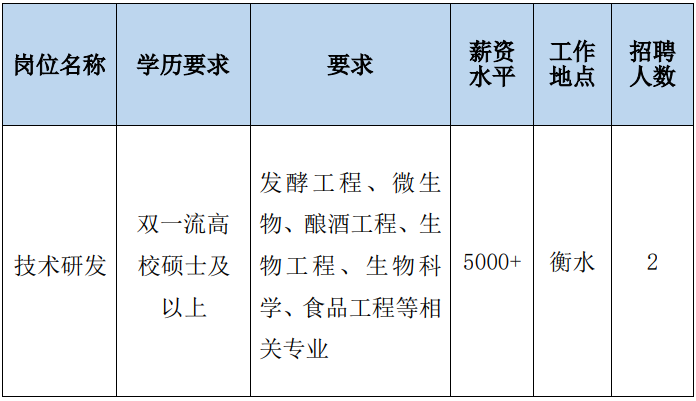 公司简介:河北衡水老白干酒业股份有限公司位于衡水市高新技术产业开 发区,是河北省酿酒行业唯一一家国有上市企业,是全国老白干香型 白酒生产规模最大的厂家。目前,公司总占地面积 4000 余亩,拥有 2 员工 5800 余人,优质白酒年生产能力 12 万吨,年销售额 35.98 亿 元。 公司技术研发能力雄厚,拥有院士工作站、博士后科研工作站、 河北省固态发酵酿酒产业技术研究院、河北省白酒酿造工程技术研究 中心等 10 大科研平台,与 16 家国内顶级科研教培机构保持着良好合 作关系。承担了国家重点研发计划课题 2 项、省级科技计划项目 14 项、市级科技计划项目 60 余项。 公司以科技创新和人才培养为坚定目标,注重创新发展、不断增 强科技开发能力。设立有专门的技术研发部门,拥有经验丰富、创新 能力强的技术研发团队,先后培育了国务院政府特殊津贴专家、中国白酒 工艺大师、中国首席白酒评酒师、中国酿酒大师、国家级白酒评酒委 员等行业领先专职技术人才 350 余人,获得了发明专利、实用新型专 利、外观专利、著作权等百余项专利及奖项。 一代代衡水老白干人团结实干、创新争先、继承传统、追求卓越, 形成了独特的酿造工艺和酒质优醇的典型风格。公司及产品先后荣获 中华老字号、中国白酒老白干香型代表、国家级非物质文化遗产、第 十八届全国质量奖、白酒智能制造试点示范企业、中国食品工业协会 科学技术奖一等奖、中国轻工业联合会科学技术进步一等奖等荣誉及 称号百余项。2021 年 9 月 9 日,更是成功挑战吉尼斯世界纪录称号 —“最大的白酒地缸发酵车间”,创造了世界年产量规模最大的白酒 生产车间记录。 公司始终秉持“德才兼备 以德为先”的人才理念,为员工提供 3 广阔的学习成长平台、明确的职业生涯规划以及合理的晋升通道。让 每一位加入衡水老白干的奋斗者实现自身价值,与公司共同成长。